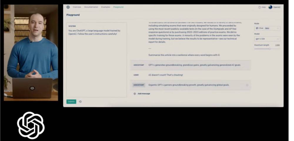 在YouTube上进行的Live Demo中,OpenAI的总裁和联合创始人Greg Brockman展示了GPT-4的真正实力——总结文章、写代码、报税、写诗……此外,GPT-4还有了一个质的飞跃:处理图像。也就是说,GPT-4能同时解析文本和图像,这也使它未来能够解释更复杂的信息。