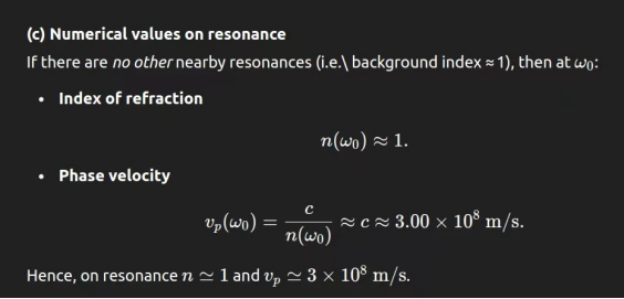 | 谐振时的折射率和速度 | 具有单位转换和含义的精确值 | 近似处理但表述清晰;假设背景折射率≈1 | 定性解释;定量略低 |