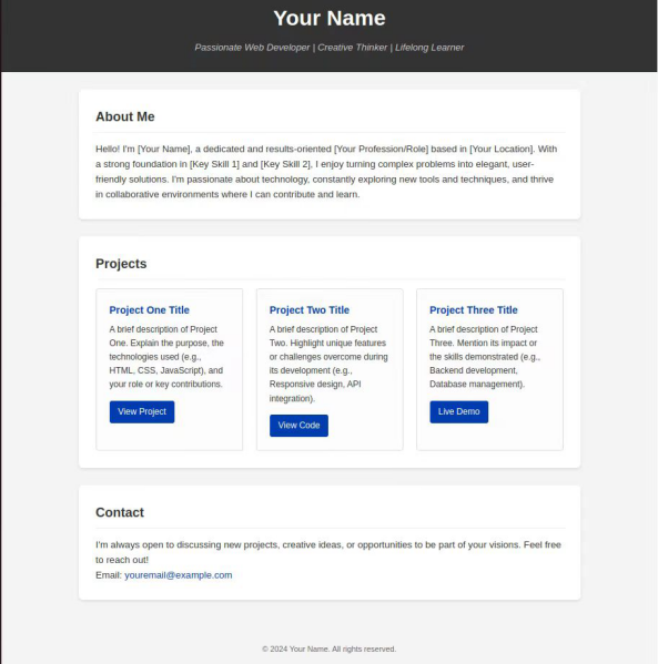 - 项目:展示至少三个带有标题、描述和链接的项目。