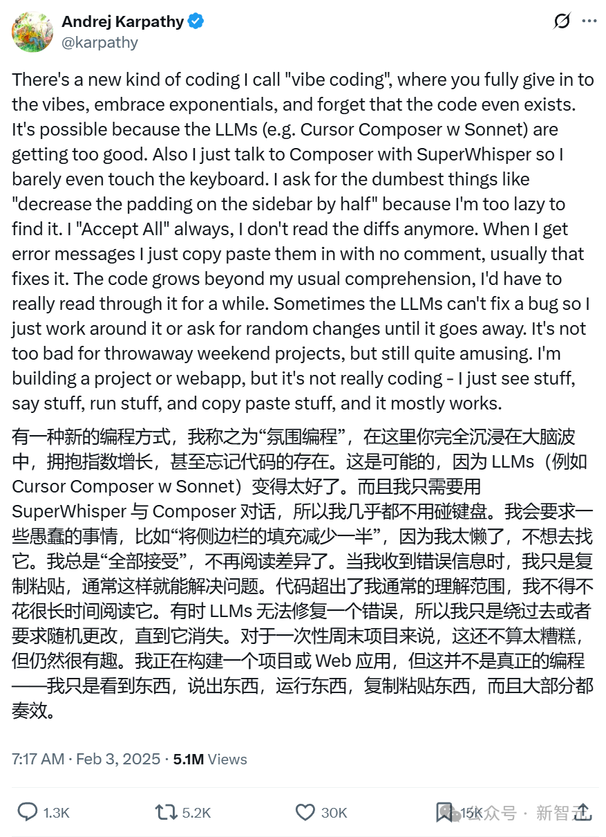 再加上Andrej Karpathy的大力推广,Vibe Coding迅速走红,已成野火燎原之势。