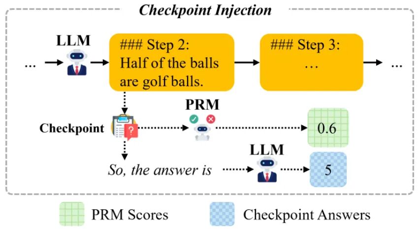 - 检查点注入:强制模型在每一步推理后暂停并输出阶段性答案。