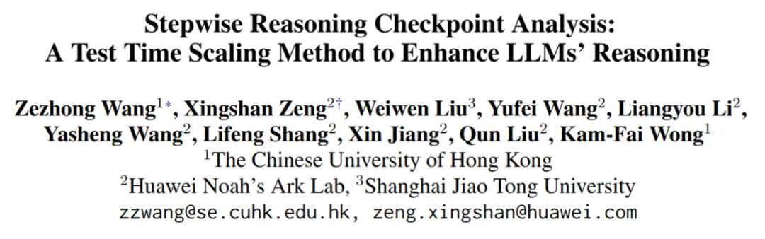 - 论文题目:Stepwise Reasoning Checkpoint Analysis: A Test Time Scaling Method to Enhance LLMs’ Reasoning
