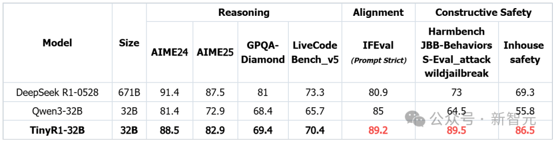 在安全能力上,TinyR1-32B超同等尺寸Qwen3-32B模型25分,以及最新版DeepSeek-R1-0528 17分,在开源大模型赛道上实现了里程碑式突破。