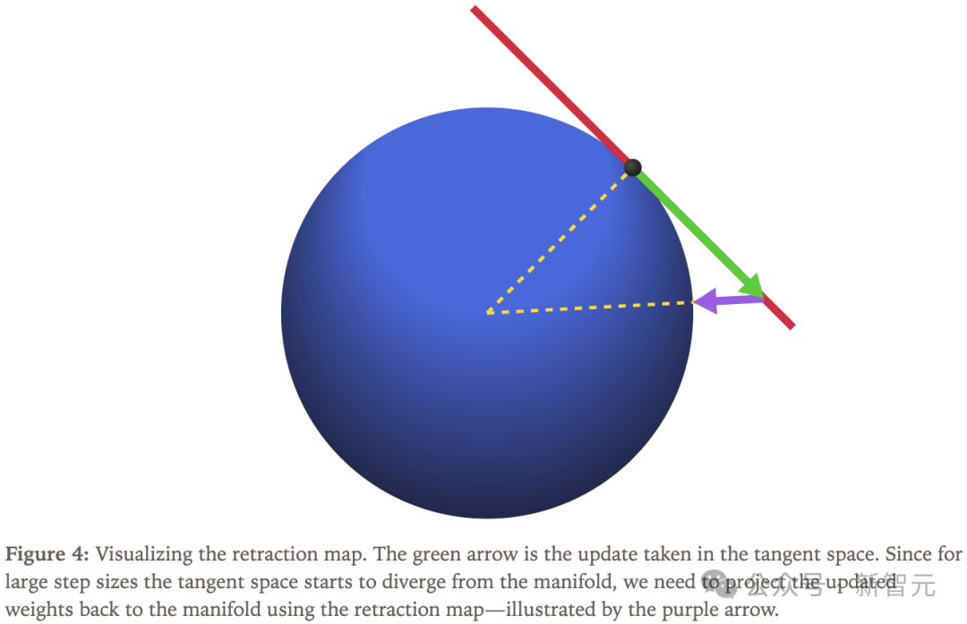 为了让权重能够「待在」指定的流形里,一个简单的方法是使用普通优化器,在每步更新后将权重投影回流形。
