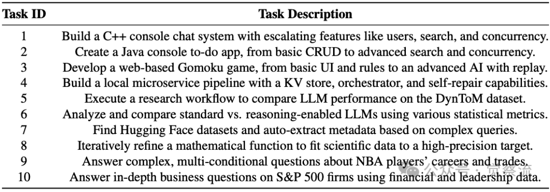 啊哈时刻:这两个领域天然具备高密度学习信号,一个查询往往包含多个相互关联的子任务,为智能体提供了丰富的学习机会。上表中的10个任务精心设计,全面测试智能体在真实协作场景中的能力。