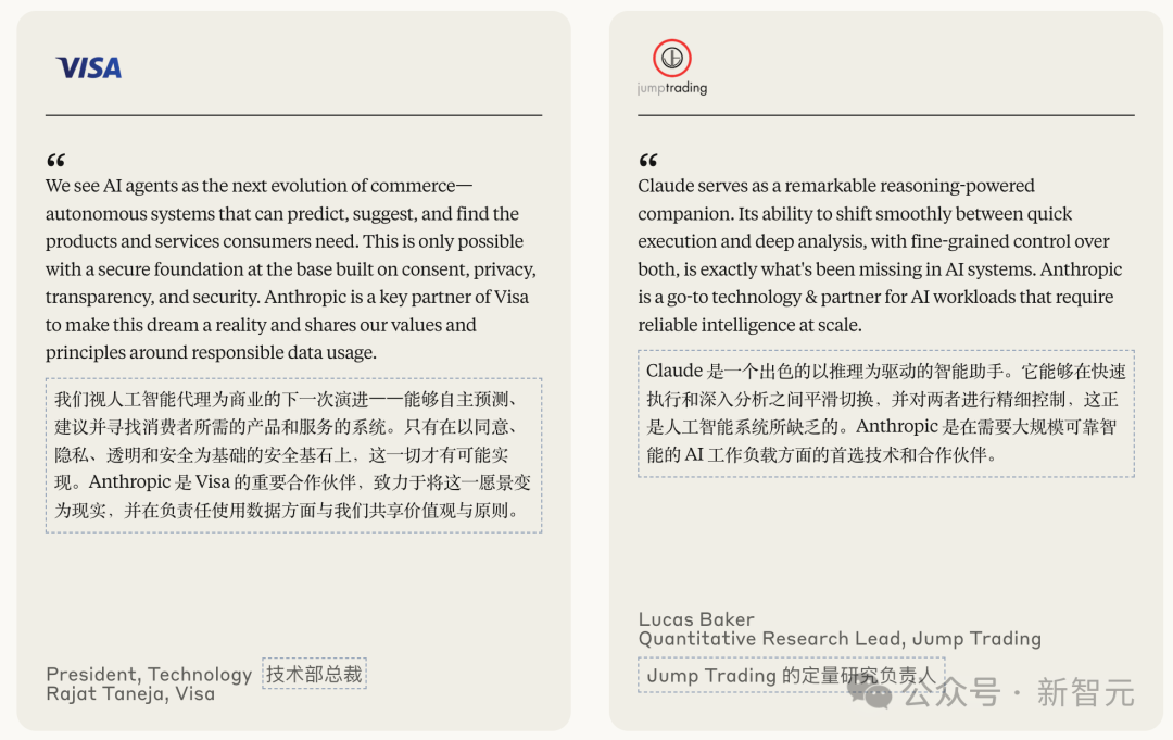 熟悉的VISA也说Claude是他们的主要合作伙伴。