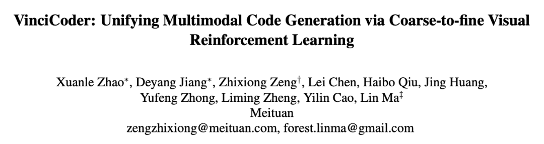 - 论文标题:VinciCoder: Unifying Multimodal Code Generation via Coarse-to-fine Visual Reinforcement Learning