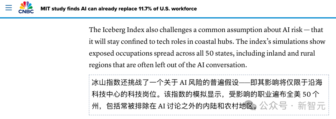 这项研究通过一个名为「冰山指数」(Iceberg Index)的模拟工具,得出了一个惊人的结论: