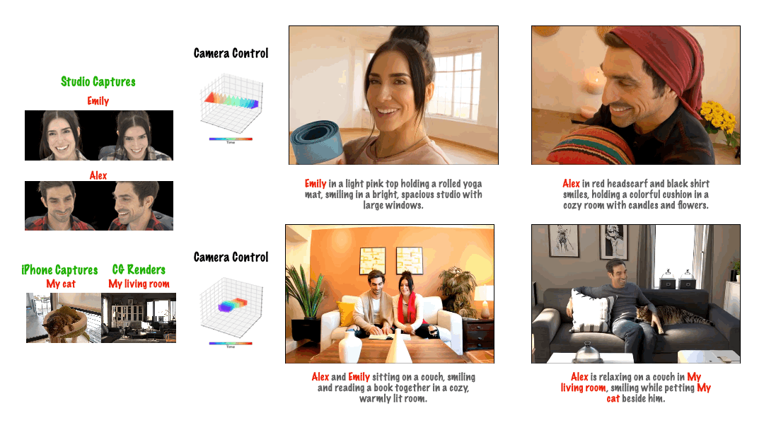 - 联合训练(Joint Training):通过少量同框数据增强互动真实性;