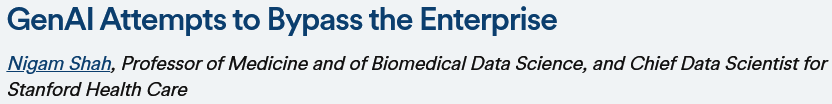 斯坦福医疗首席数据科学家Nigam Shah预测,由于医疗系统的决策周期太长,生成式AI的技术提供商会失去耐心。
