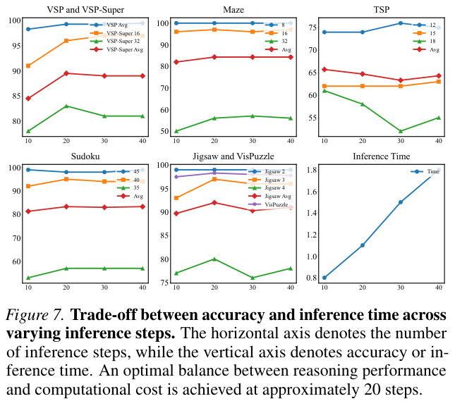 实验发现,20步是一个完美的平衡点。在此步数下,模型已经能够充分捕捉推理流形,生成高质量的解答,同时保持极高的推理速度。