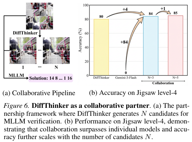 DiffThinker弥补了大模型视觉想象力的匮乏,而大模型弥补了DiffThinker在严格逻辑校验上的不足。