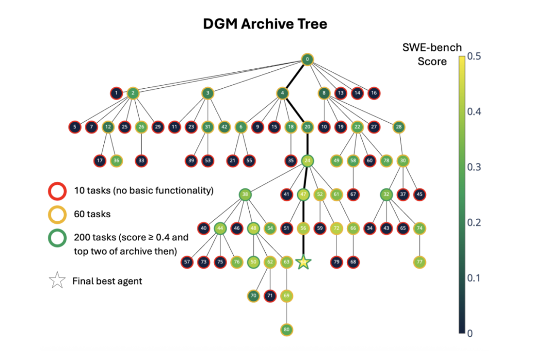 通过从现有智能体库中采样生成新智能体,DGM能够并行探索多条进化路径。