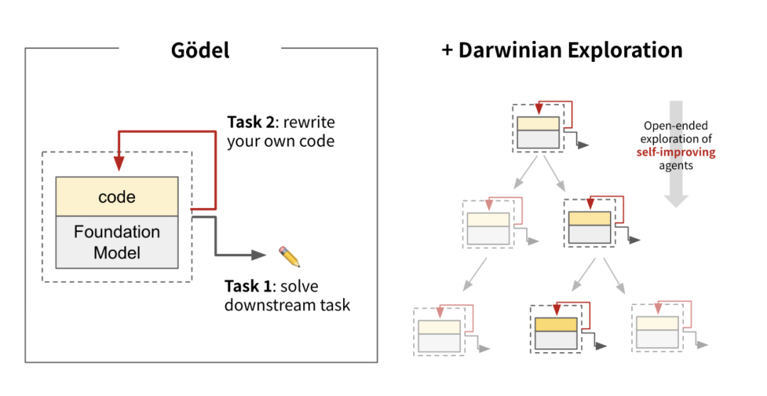 这篇论文将LSTM之父Jürgen Schmidhuber二十年前提出的哥德尔机(Gödel Machine)思想,与达尔文开放算法相结合,提出了能持续自我迭代的达尔文哥德尔机。